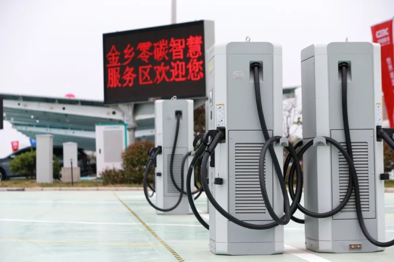 在金鄉(xiāng)高速服務(wù)區(qū),縷縷陽(yáng)光匯集在光伏車棚、垂直軸風(fēng)機(jī)、屋面光伏板上,整個(gè)服務(wù)區(qū)實(shí)現(xiàn)了100%“綠電”供應(yīng):將手機(jī)放在無(wú)線充電桌上,一會(huì)兒便能“滿血復(fù)活”;無(wú)人超市里,只需拿著商品在機(jī)器上掃碼、付款即可;電動(dòng)汽車在服務(wù)區(qū)只需十多分鐘,便充滿了電。
