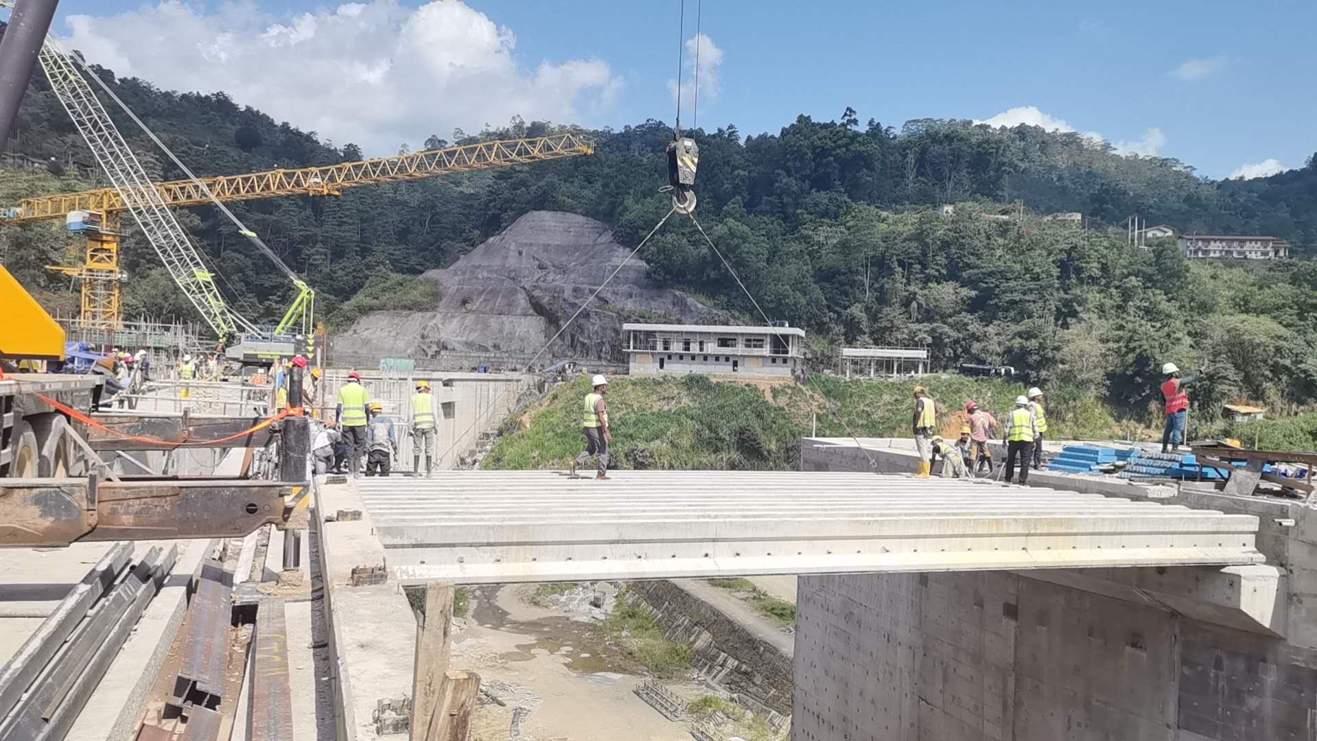 斯里蘭卡莫拉高拉水電站項(xiàng)目大壩與進(jìn)水口連接梁吊裝成功