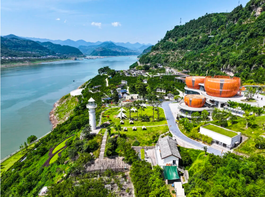 這是2024年5月15日拍攝的重慶萬州小桔燈生態(tài)文化旅游區(qū)及長江景象(無人機(jī)照片)。新華社記者 王全超 攝