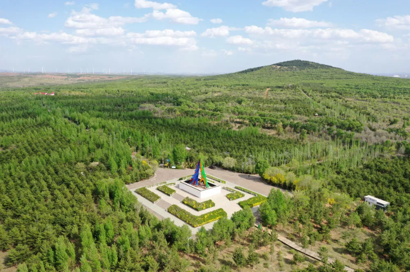 這是2023年5月18日拍攝的山西省朔州市右玉縣南山森林公園一角(無人機(jī)照片)。新華社記者 詹彥 攝