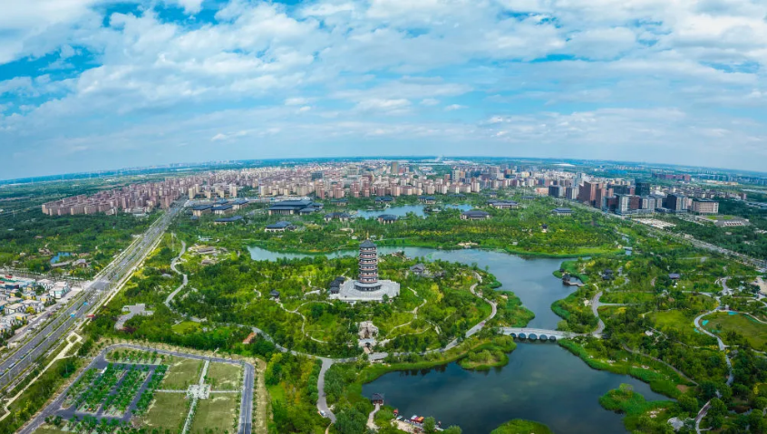 這是2025年6月16日拍攝的雄安新區(qū)悅?cè)莨珗@(無人機(jī)照片)。新華社發(fā)